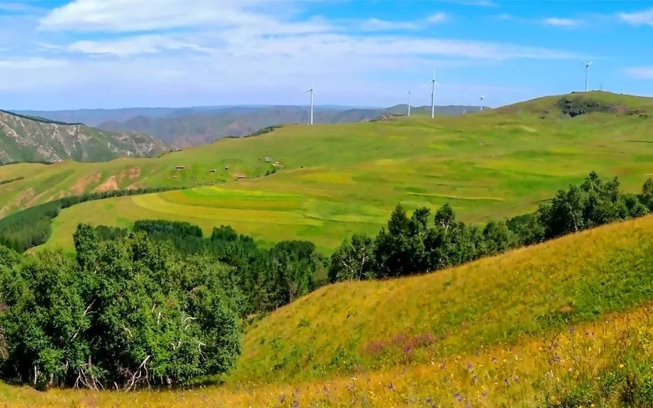 浩瀚无垠的金毯,黄花娇艳,牛羊成群,骏马奔驰,“大风车”迎风飞舞,被这幅草原巨作惊艳到了。