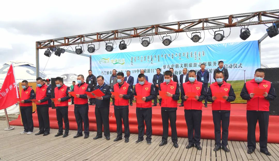 察右中旗文明旅游志愿服务队成立仪式,为了倡导文明旅游,营造风清气正的旅游环境,乌兰察布市旅游志愿者代表还宣读了《文明安全旅游倡议书》,呼吁文明旅游,健康出行,我们一定要认真遵守。
